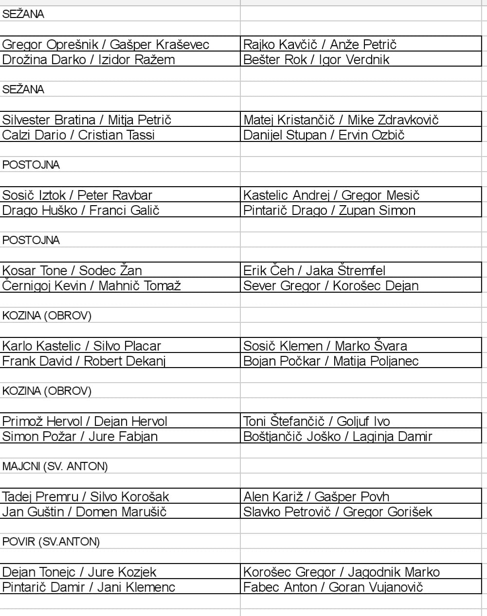 Cena je 20 eur/ekipo/kolo: